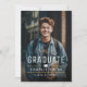 Modern and minimal typography graduation announcements with photo, fun graduation party invitation on the back in black, gold and white, Custom it with your own photo and party information.