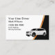 Ride hailing automotive business cards for an Uber driver or car service with image of a modern SUV vehicle in the background and simple text layout you can replace to make this your own. Works for a taxicab driver, Uber independant courier, or car service.