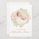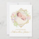 Birth announcement for a little girl has delicate watercolor flowers and golden accents. Add two photos and personalise on front and back.