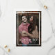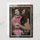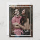 This modern wedding photo save the date features a bold frame and text over a full bleed photo on the front. The back has a wedding website. Click the edit button to change photos and text to fully customise this design.