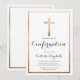 This modern and elegant confirmation invitation is perfect for your child's special day. It features a faux printed gold foil cross and border on top of a simple white background with ornate cursive typography. It's chic, pretty, minimalist, and regal.
