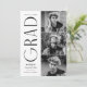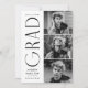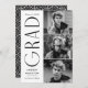 Stylish graduation announcement featuring the graduate's three photos located to the right of the design in a vertical layout. "Grad" is displayed in black, modern art deco lettering. Personalize the modern photo graduation announcement by adding the graduate's name, graduation year, and school name. The design reverses to display a black and white geometric swirl background. Perfect for both high school and college graduations!