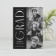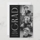 Stylish graduation announcement featuring the graduate's three photos located to the right of the design in a vertical layout. "Grad" is displayed in white, modern art deco lettering with a black background. Personalize the modern photo graduation announcement by adding the graduate's name, graduation year, and school name. The design reverses to display a black and white geometric swirl background. Perfect for both high school and college graduations!