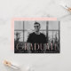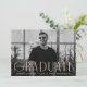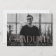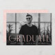 Simple graduation party invites featuring the graduate's horizontal photo with "Graduate" displayed in blush pink, modern art deco lettering. Personalise the front of the photo graduation party invite by adding the graduate's name, school, and grad year. The invite reverses to display your party details with a blush pink and white geometric swirl background.