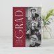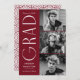 Stylish graduation announcement featuring the graduate's three photos located to the right of the design in a vertical layout. "Grad" is displayed in white, modern art deco lettering with a burgundy background. Personalise the modern photo graduation announcement by adding the graduate's name, graduation year, and school name. The design reverses to display a burgundy and white geometric swirl background. Perfect for both high school and college graduations!
