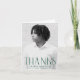 Simple graduation thank you card featuring the graduate's vertical photo with "Thanks" displayed in green, modern art deco lettering. Personalise the front of the photo graduation thank you card by adding the graduate's name, school name, and graduation year. The inside of the card features space for your custom thank you message in green lettering or leave it blank to write your own!