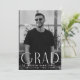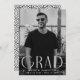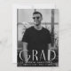 Celebrate the graduate with these stylish graduation party invitations featuring a vertical photo of the graduate and "Grad" in white, modern art deco lettering. Personalise the front with the graduate's name, school, and graduation year for a custom touch. The back of the invite showcases your party details against a chic black and white geometric swirl background, creating a sophisticated design perfect for any high school or college graduate. These minimalist yet elegant invites are the perfect way to announce your graduate’s special day.