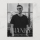 Simple graduation thank you postcard featuring the graduate's vertical photo with "Thanks" displayed in white, modern art deco lettering. Personalise the front of the photo graduation thank you postcard by adding the graduate's name, school name, and graduation year. The postcard reverses to display your return address and provides space for your typed or handwritten thank you message.