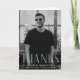 Simple graduation thank you card featuring the graduate's vertical photo with "Thanks" displayed in sky blue, modern art deco lettering. Personalize the front of the photo graduation thank you card by adding the graduate's name, school name, and graduation year. The inside of the card features space for your custom thank you message in black lettering or leave it blank to write your own!