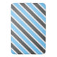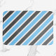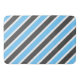 This bath mat features a beautiful diagonal striped pattern in sky blue, dark gray, and white.
