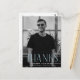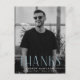Simple graduation thank you postcard featuring the graduate's vertical photo with "Thanks" displayed in sky blue, modern art deco lettering. Personalize the front of the photo graduation thank you postcard by adding the graduate's name, school name, and graduation year. The postcard reverses to display your return address and provides space for your typed or handwritten thank you message.