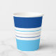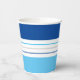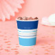 These modern paper cups feature a colourful pattern with blue and white stripes. Personalise it with your name at the top. Customise the colour scheme by clicking Customise further.