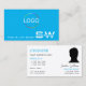 Modern Sky Blue White with Monogram Logo and Photo Business Card