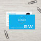YOUR FAVORITE - Make a lasting impression with this modern business card design with monogram, logo and (employees-) photo, on plain sky blue and white coloured backgrounds.