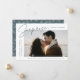 Share the news of your surprise engagement with these elegant photo engagement announcements. The design features the phrase "Surprise, we got engaged!" in a trendy smoked blue-grey-coloured script and modern lettering. Your engagement photo is featured in the centre-right part of the design with your names and engagement date displayed on the left. Personalise the surprise engagement announcement by adding additional details below such as wedding city/state, wedding website, etc. The announcement reverses to display a white foliage pattern on a blue-grey-coloured background.