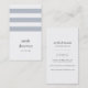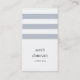 Modern and chic business card design in a unique vertical format features three wide slate blue-grey stripes on a white background, with your name and business name or title in an attractive mix of lowercase serif and modern caps typefaces. Add your full contact information to the back in dark charcoal blue lettering. Suitable for any occupation; example shown for interior design professions.