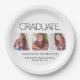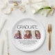 Modern 3-photo graduation party paper plates with sleek lettering and rounded edges on your photos. Personalise with your name, school name, and graduation year. Perfect for high school or college graduation parties. Contact me for assistance with your customisations or to request additional matching or coordinating Zazzle products for your graduation.