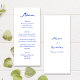 This delightful wedding menu boasts a whimsical and playful handwritten script font in stunning shades of bright blue. The perfect addition to any fun and vibrant wedding celebration, this menu can be customised to meet your personal preferences.