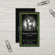Sleek modern vertical business card design features single glass with spotlight black and white photo with neon green border . Perfect selection for bartenders, mobile mixologists and anyone else associated with the adult drink industry. Add your custom QR code for your social media profile or website calendar of events to stay connected with guests and future customers.