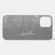 Modern iPhone 12 case in grey and sliver glitter, elegantly adorned with your script first name.