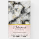 A wedding banner with an elegant and modern marbled pattern. White, black and smoky grey marble with thin ribbons of faux-gold swirls throughout the pattern. A light pink gradient background beneath the marbled pattern.