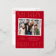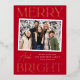 Modern Snapshot Red Merry and Bright Photo Foil Holiday Postcard