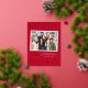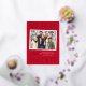 Modern foil holiday postcard featuring your horizontal photo nestled inside of a white instant photo frame. The phrase "Merry and Bright" is displayed in gold foil lettering with a festive red background. Personalise the front of the snapshot holiday postcard with your custom greeting, family name, and year. The postcard reverses to display your return address and personal message.
