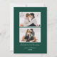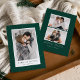 Share your holiday cheer with these simple and elegant holiday cards featuring your photo framed in white with snow flurries against a dark green background. The back of the card offers space for two additional photos and a custom message. Add your personalized holiday greeting to create a classic Christmas card that feels cozy and festive.