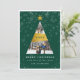 Modern Snow & Gold Foil Christmas Tree Photo Frame Invitation