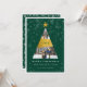 This design is perfect for any family looking for a modern, elegant Christmas photo card. Stand out from the crowd with this unique holiday greeting card! This design features a festive green background with a snowflake overlay. In the centre of the design is a triangle Christmas tree frame with a gold centerpiece with the year, a gold star on the top, and 2 of your family photos above and below. Under the tree, it reads "Merry Christmas with lots of love from" and your family name. Click the "personalise" button to add your own images and family name.