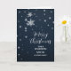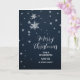 Merry Christmas for sister and her family card with modern snowflakes pattern on a navy blue sky.