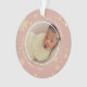 This holiday season, commemorate a special year with this elegant personalised photo Christmas ornament. A modern snowflakes framing your favourite photo in round format with holiday greeting and family name, year text curving around. Add a second photo to the reverse side.
