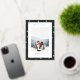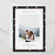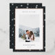 Share holiday greetings with these photo Christmas cards featuring your favourite photo set on a modern and minimal background of white snowflakes on rich soft black trimmed with rose gold foil. An editable message area lets you customise your holiday greeting in modern lettering. Add your family name or names beneath.
