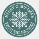 Modern snowflake name pine green Merry Christmas Classic Round Sticker