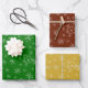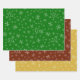 Add a custom touch to your seasonal holiday decor with this monogrammed snowflake pattern set of wrapping paper sheets. Gift wrap has falling snow on red, green, and gold backgrounds. Add your family monogram initial for a personalised touch.