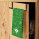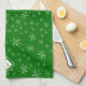 Modern Snowflake Pattern on Green Monogrammed Tea Towel