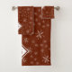 Modern Snowflake Pattern on Red Monogrammed Bath Towel Set
