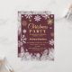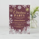 This elegant Christmas Party invitation features a red background adorned with intricate white and golden snowflakes. Sparkling frosted pine branches line the bottom, adding a wintery charm. The design creates a festive yet sophisticated feel, perfect for a holiday celebration.