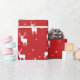 Modern Snowflake Reindeer Red Holiday Pattern Wrapping Paper
