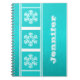 Dazzling and stylish Modern Snowflakes Notebook in turquoise featuring a trio of snowflakes, a polka dot border, and a metallic look background. This elegant and seasonal winter themed notebook is perfect for jotting down notes or reminders this holiday season. Customise this design with your own text.
