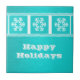 Dazzling and stylish Modern Snowflakes Tile in turquoise featuring a trio of snowflakes, a polka dot border, and a metallic look background. This elegant and seasonal winter themed tile will add holiday flair to any decor. Customise this design with your own text.