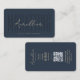 Modern Social Media Manager Influencer Marketing Professional Monogram Dark Blue business card with QR code