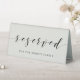 Custom-designed wedding reserved table sign featuring modern hand calligraphy with personalised text on soft beige colour background.