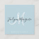Modern soft blue elegant script signature monogram square business card