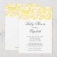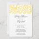 Start off your baby girl baby shower, gender neutral baby shower or baby boy baby shower off right with our trendy & elegant pale yellow & white floral damask swirl Baby shower invitation set on a crisp white background. Just customise our elegant invitation with your baby shower information and you're all set to go. Available in other stylish baby colour combinations in our shop at www.celebrateitinvites.com. Check out our matching thank you notes, stickers and bridal buttons in our shop