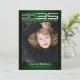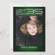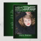 Modern high tech sci-fi style, graduation photo announcement cards, featuring design elements of sophisticated futuristic typography reading "Class of 2023 Graduate" your name and school name. The back of the card offers personalised text spaces for information about your graduation and future journey. Colours are white and silver grey coloured text on gradient shades of emerald green or easily change the background colour as you like. Perfect for all high school, college, university and tech school grad student seniors.