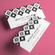Perfect for the modern woman, this business card features a geometric pattern reminiscent of Indian blanket patterns in bold, graphic black and white, accented with faux silver glitter. Personalised text on the front makes these business cards easy to hand out to clients and potential clients while the blank space on the back gives you somewhere to write any extra info.