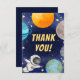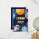 For the little one who has just had a space themed birthday party. This modern kid's space party thank you card can be personalised with the inclusion of your own message on the back. On the front, the design text can be kept as-is or edited. Thank your guests for coming with these cute space themed thank you cards.