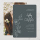 Modern Space Grey Foliage Outline Photo Wedding Invitation
