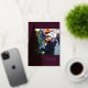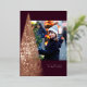 With a modern Christmas tree of foil flurries in rose gold on a rich plum purple background, this one-photo card is the perfect way to send holiday greetings. The message is customisable, as is the background colour. Great for families, couples or anyone with sophisticated taste. The coordinating backer is a matching jewel tone plum purple with white speckles. This unique holiday card design is available in a variety of colours and styles and is sure to suit many photos.